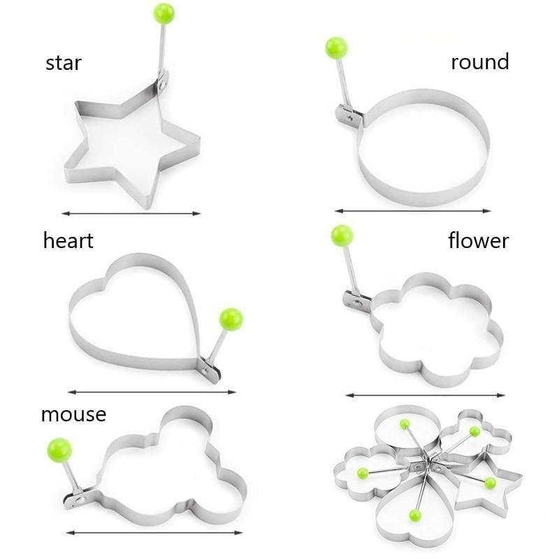 Various Shapes: This pancake mold set features 5 distinct shapesācircles, hearts, Mickey, stars, and flowers. They help you create unique omelets or sandwiches, adding variety and fun to your meals!